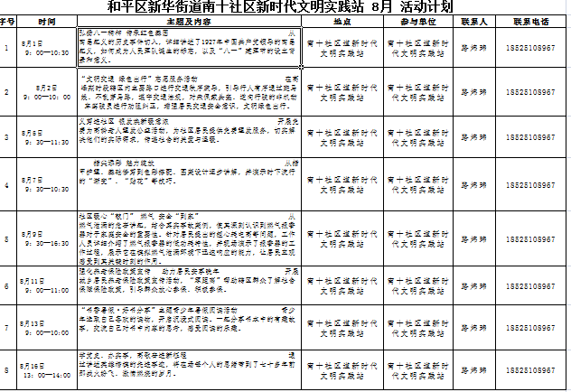 南十社区新时代文明实践站2025年8月份活动安排表